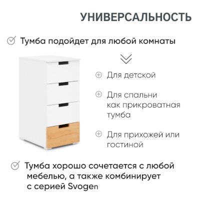 • Стильная лаконичная тумба в скандинавском стиле отлично дополнит другие комплекты мебели Svogen