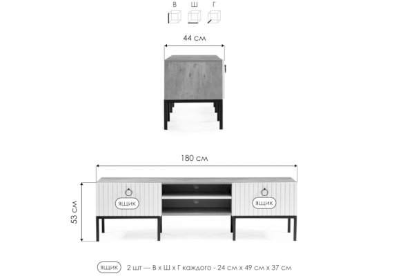 Предусмотрено хранение дисков / техники (приставка для телевизора)