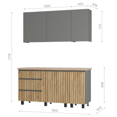 В комплекте раздельная столешница Дуб кера 38 мм (1200 мм и 400 мм)