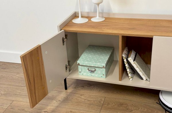 Тумба "Доминика" - это идеальное сочетание функциональности и элегантного дизайна, способное украсить любой интерьер. Она может служить как комодом для хранения различных предметов, так и тумбой для телевизора, обеспечивая удобство и стиль.