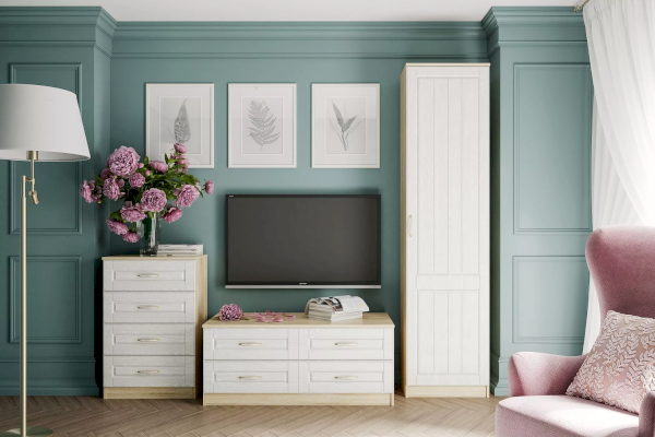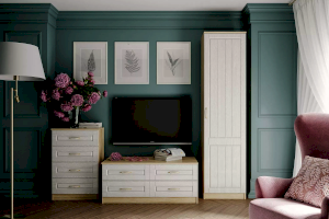Тумба Оливия НМ 040.48 Ф может быть частью набора или выступать в качестве самостоятельного элемента гостиной. На широкой столешнице достаточно места для размещения и ТВ, и предметов декора. Тумба оборудована четырьмя выдвижными ящиками для хранения книг, документов и аксессуаров.