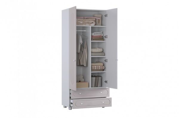 Шкаф двухдверный Милана — практичное и вместительное решение, которое помогает удобно хранить вещи и сохранять аккуратный, спокойный интерьер детской комнаты.