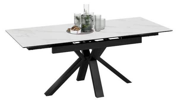 «Дерби» Тип 1 – стильный обеденный стол с керамогранитом, который преобразит любое помещение своим сдержанным видом, строгие и четкие линии подчеркивают элегантный стиль модели. Великолепный образ столу придает строгая по геометрии икс-образная опора, она выделяется своей уникальностью и придает оригинальный вид изделию.