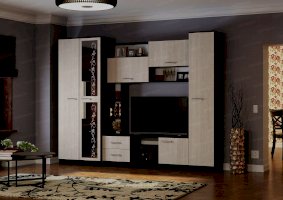 Универсальный дизайн и высокую функциональность объединила в себе гостиная «Флора». Она надежна и вместительна, рассчитана на долгие годы активной эксплуатации. Незамысловатое оформление гарнитура идеально гармонирует с современными интерьерами. Индивидуальность и немного шарма придают изделию цветочный орнамент на зеркале и ассиметрично расположенные открытые полочки.